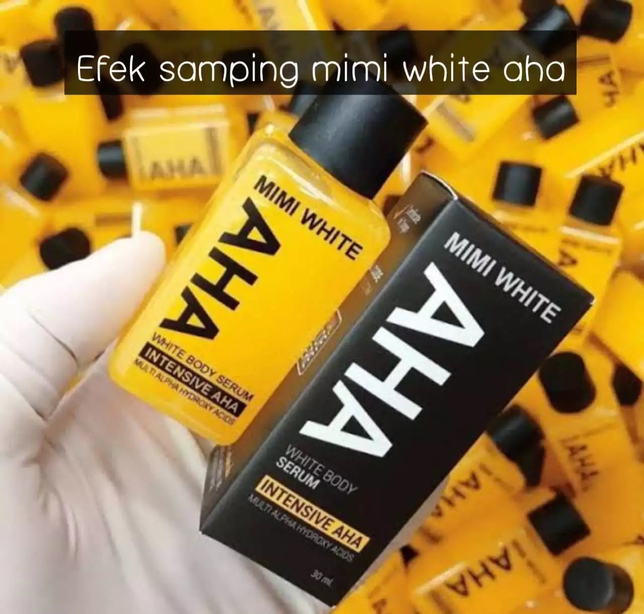 Mimi White AHA merupakan body serum yang memiliki bahan kandungan utama Alpha Hydroxy Acid atau Asam Alfa Hidroksi. Tubuh kita hanya mampu mentoleransi bahan kandungan AHA hanya sebanyak 10 persen dan tidak boleh lebih dari itu. Untuk penggunaan AHA sendiri lebih baik dalam pengawasan dokter agar tidak menimbulkan efek samping.